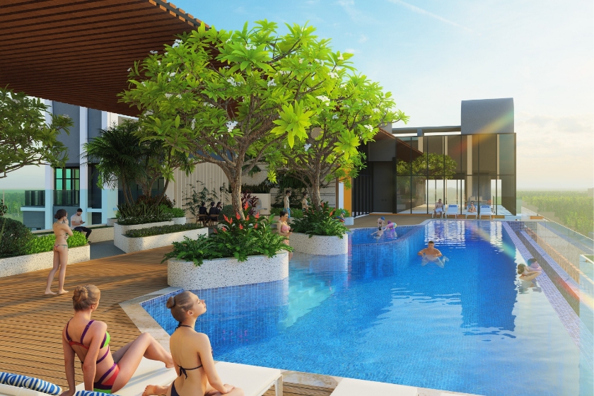 - Tiện ích: Hồ bơi trên tầng 25, phòng chơi cho trẻ em, không gian làm việc chung (coworking), phòng gym, v.v.
