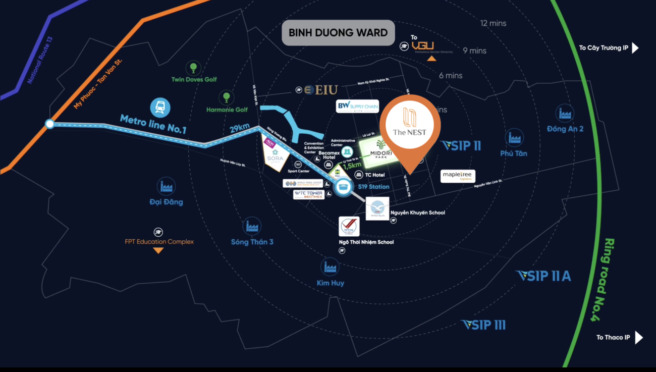 MIDORI PARK The NEST nằm trong chuỗi dự án thành công của Becamex Tokyu như SORA Gardens 1, SORA Gardens 2, The VIEW, The GLORY, The TEN, nhà phố Haruka và khu ẩm thực Hikari. Dự án hướng đến thế hệ trẻ với ý nghĩa “Tổ ấm” – The NEST, mong muốn mang đến cho các gia đình trẻ một không gian sống ấm áp, an toàn và ổn định để xây dựng và nuôi dưỡng gia đình trong cộng đồng MIDORI PARK.