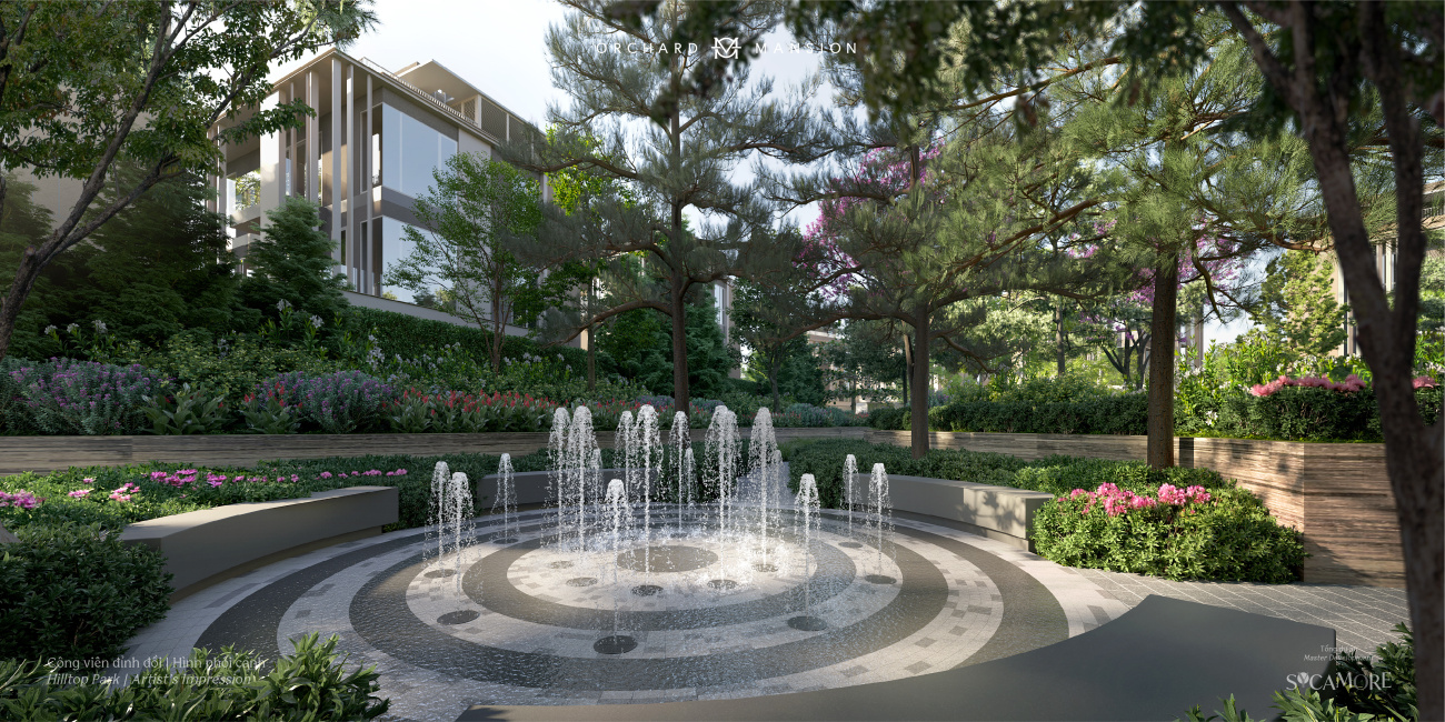 1. Tiểu cảnh đón chào – Hillside Springs Không gian cảnh quan sang trọng tạo ấn tượng đầu tiên cho cư dân và khách đến thăm.