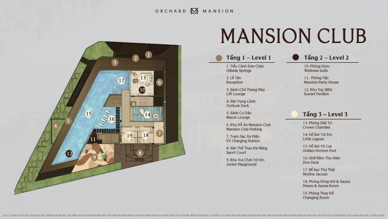 2. Tiện ích “Độc quyền” – Exclusive Facilities (49 hạng mục) Từ khu thể thao, thư giãn, đến các không gian sinh hoạt cộng đồng – tất cả đều được thiết kế riêng cho cư dân Orchard Mansion, mang lại trải nghiệm sống vượt trội.